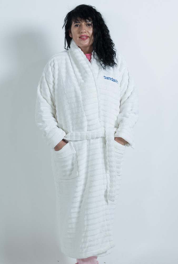 Bademäntel mit eingewobenem Sujet verbinden luxuriöse Weichheit mit dauerhafter Eleganz, die auch nach vielen Wäschen nicht verblasst. Sie verleihen Ihrem Bad-, Hotel- oder Spa-Bereich eine hochwertige, individuelle Note und sind gleichzeitig strapazierfähig für den täglichen Gebrauch.
