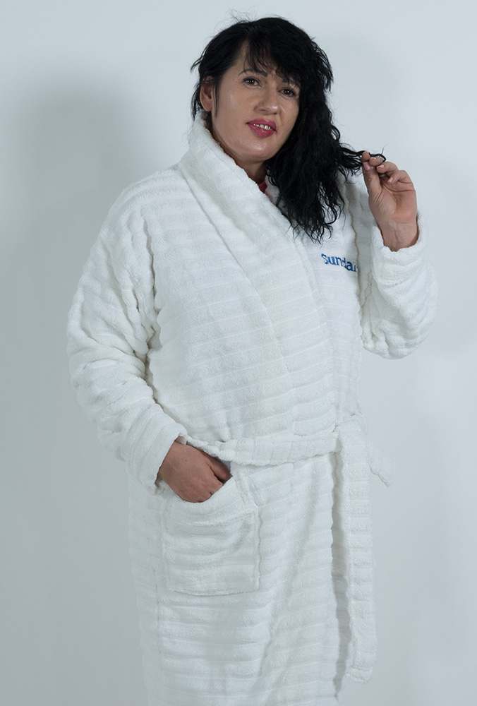 Auf diesem Bademantel in 600g-Baumwolle wirken Ihre Stickerei und Ihr Logo edel. Der Bademantel aus Baumwoll-Florgewebe mit Relief-Struktur ist langlebig und kann oft gewaschen werden. Der Unterschied zu gewöhnlichen Bademänteln ist sofort spürbar.