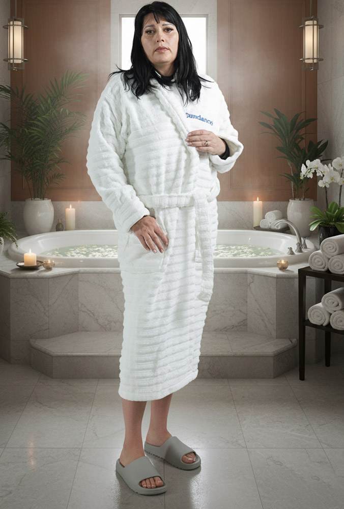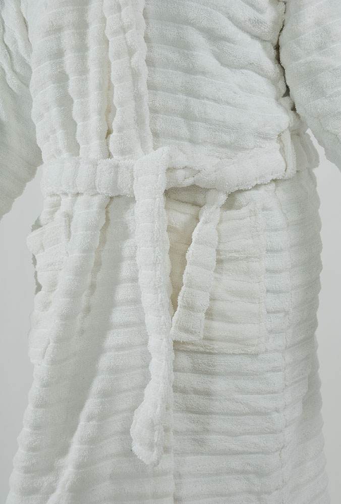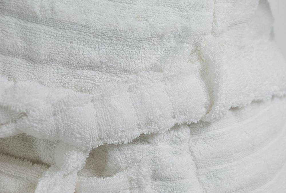 Dieser Bademantel aus Baumwoll-Florgewebe mit Relief Struktur ist langlebig und kann oft gewaschen werden. Der Unterschied zu gewöhnlichen Bademänteln ist sofort spürbar.