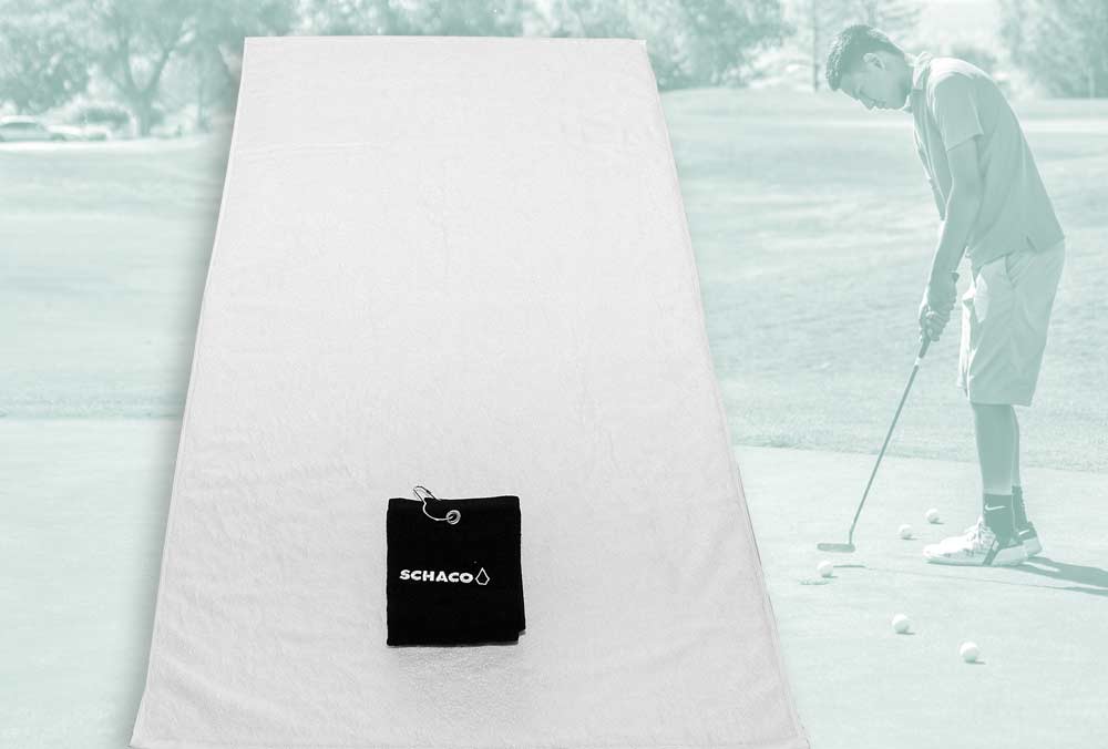 Die Golftücher in schwarz oder weiss sind aus 100% hochwertiger Baumwolle mit Floorschlaufen in 450g/qm Qualität.