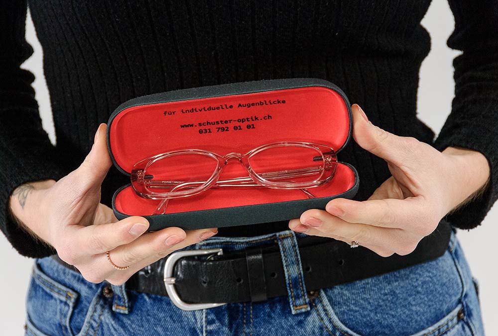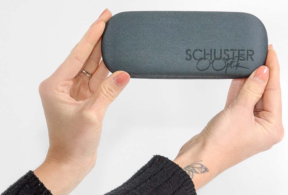 Alternativ zum Logodruck ist ein vollflächiges Design auf den Brillenetuis möglich.