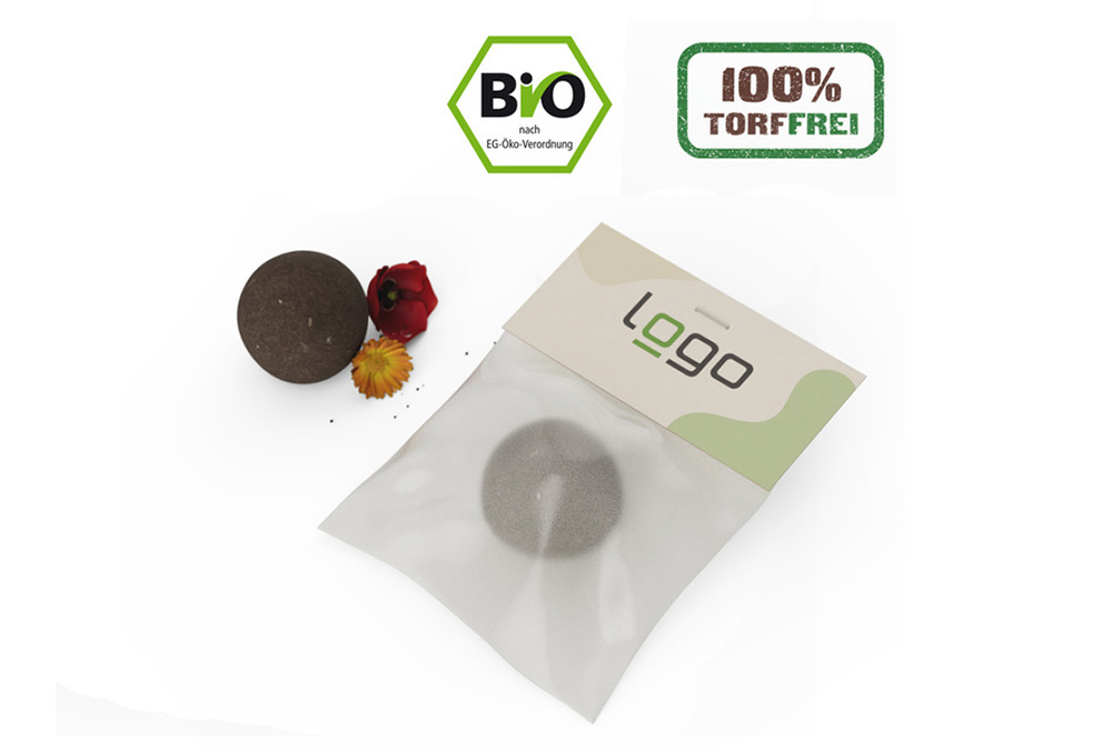 Bio Samenball Seedbomb mit Werbung