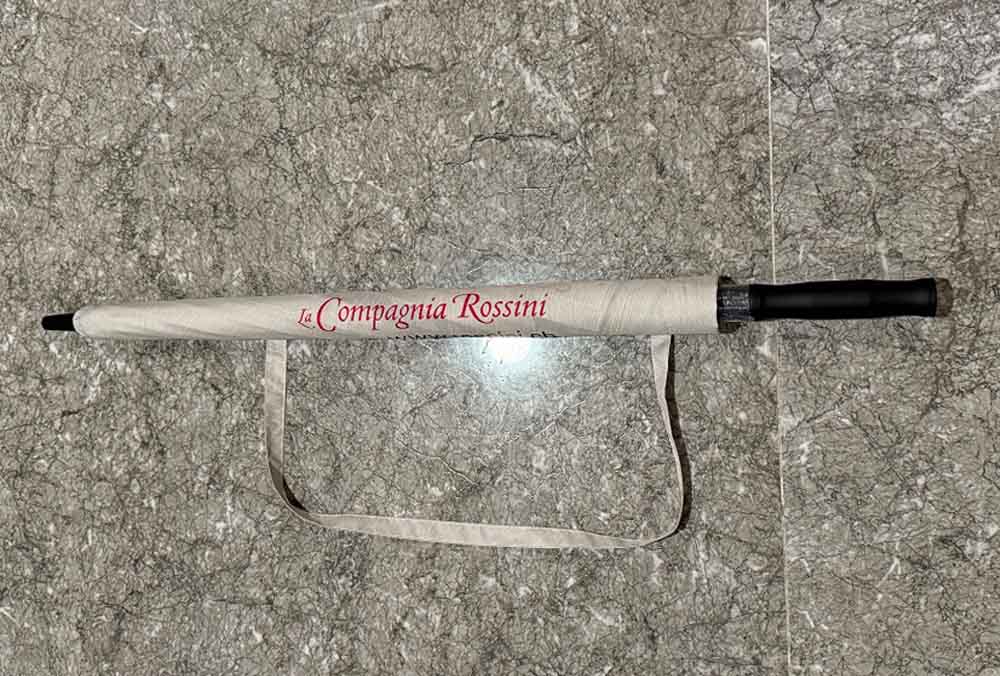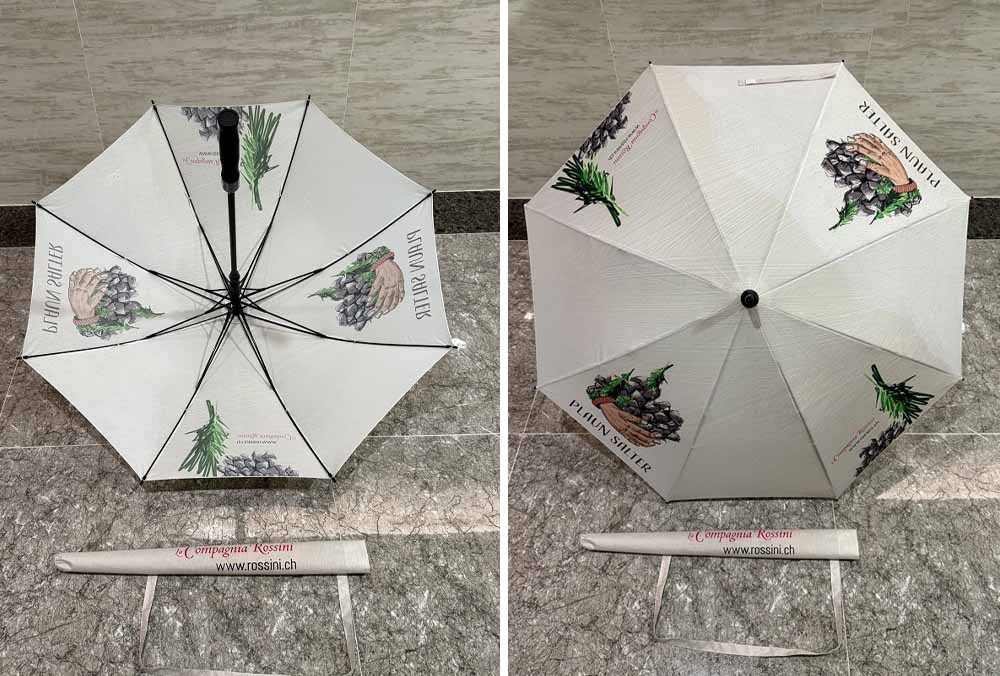 Inferno La Berra zeigt Regenschirm Model Classic 6.2 mit silberfarbigem Bezugsstoff bringt zusätzlichen UV Schutz
