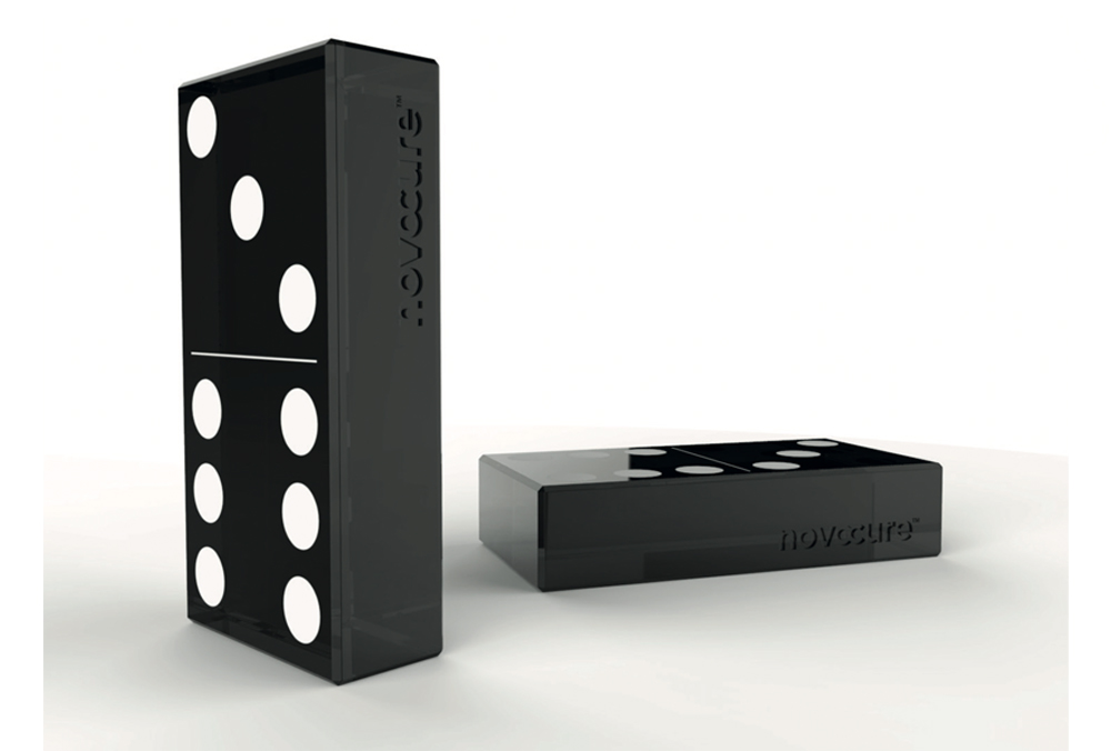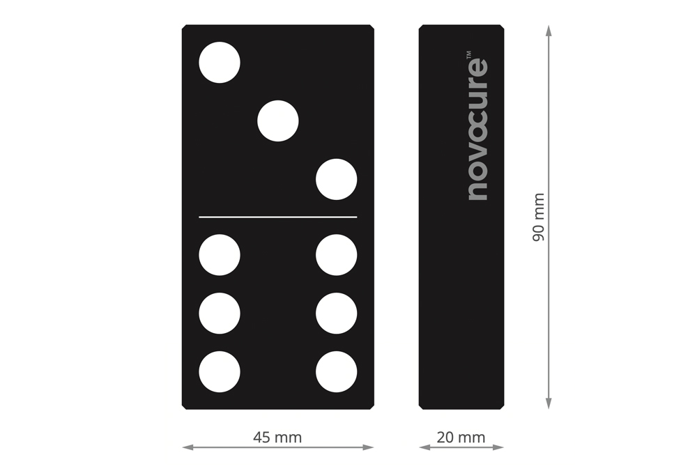 Glasquader Dominostein mit Ihrem Sujet und Firmenname.
