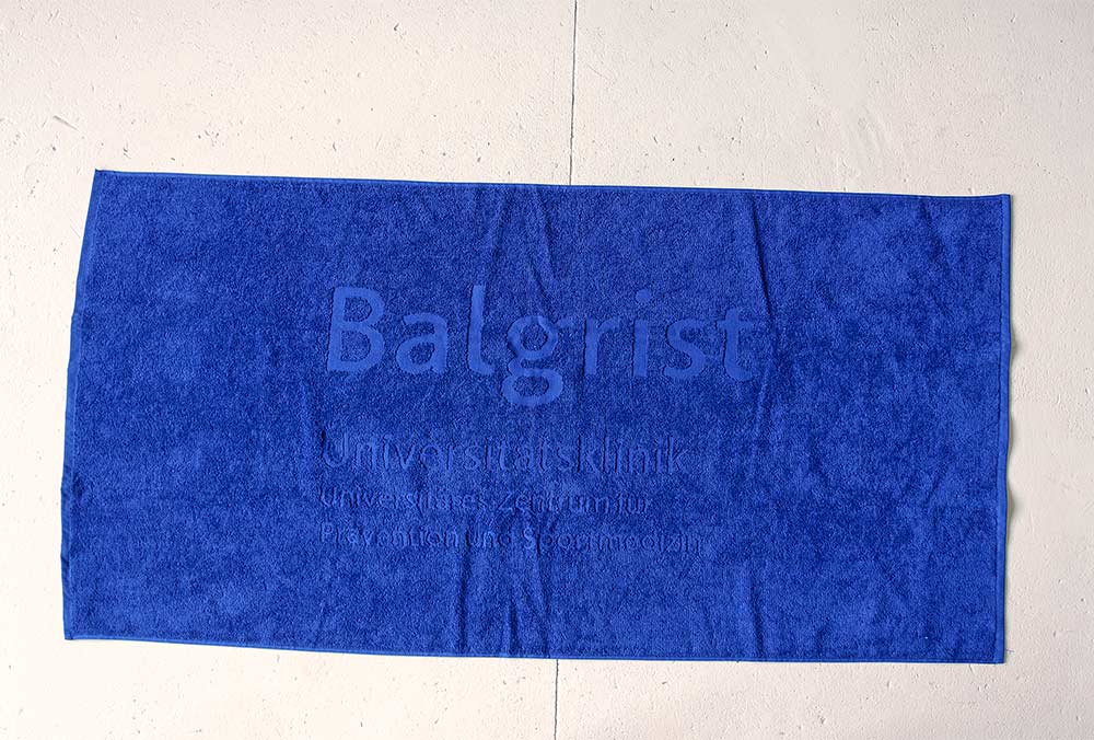 Das Tiefziehen des Logos auf dem Badetuch ergibt eine schöne Reliefwirkung, die optisch wie haptisch viel hermacht.
