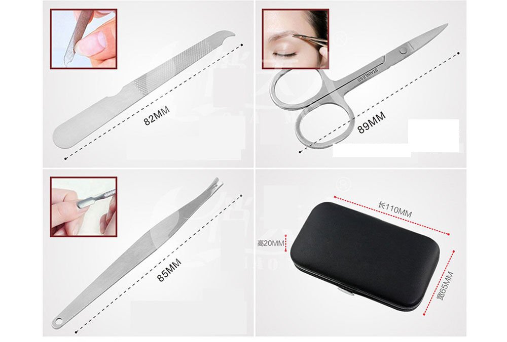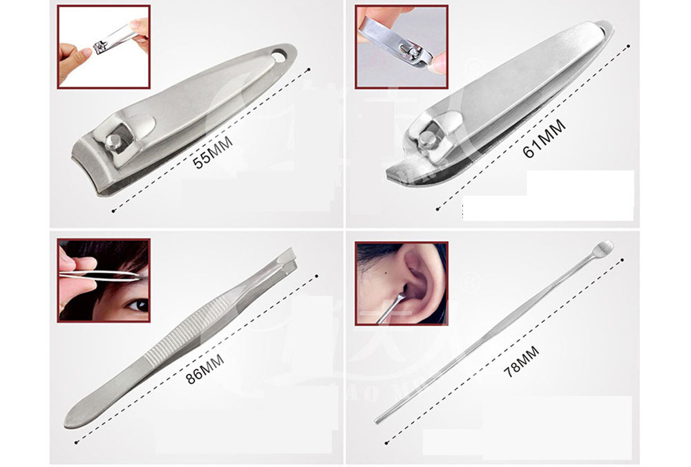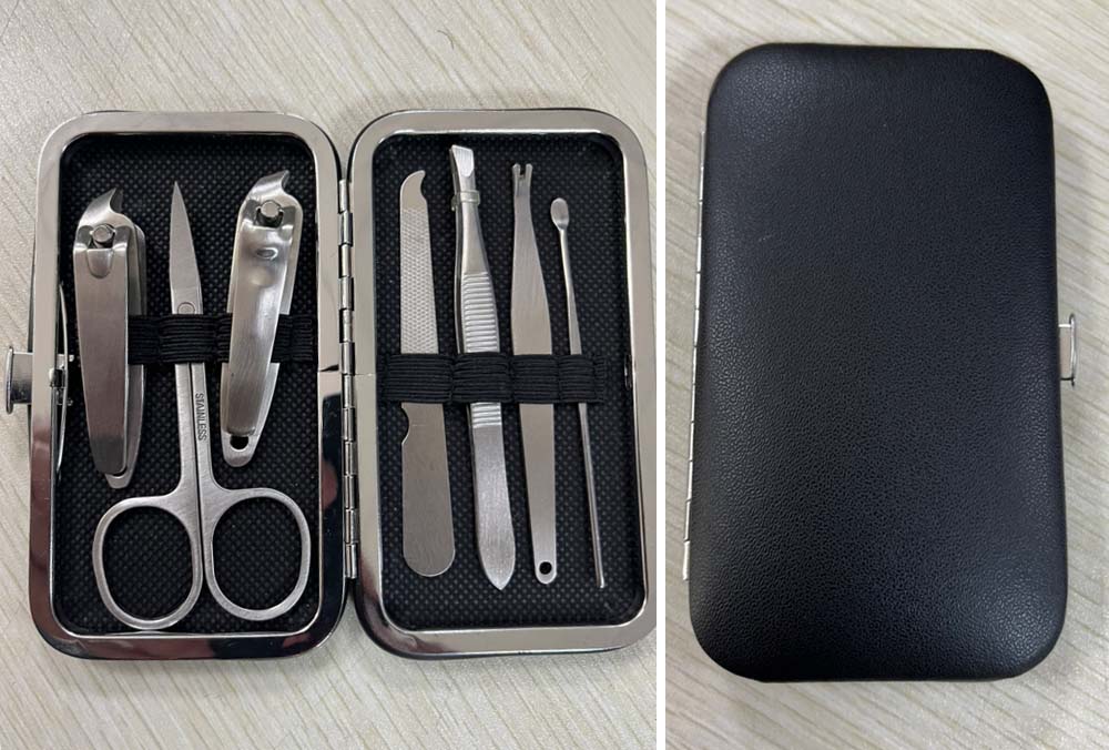 Etuigrösse 110x65x20 mm mit dem typischen Inhalt, des es für eine vollständige Maniküre benötigt.