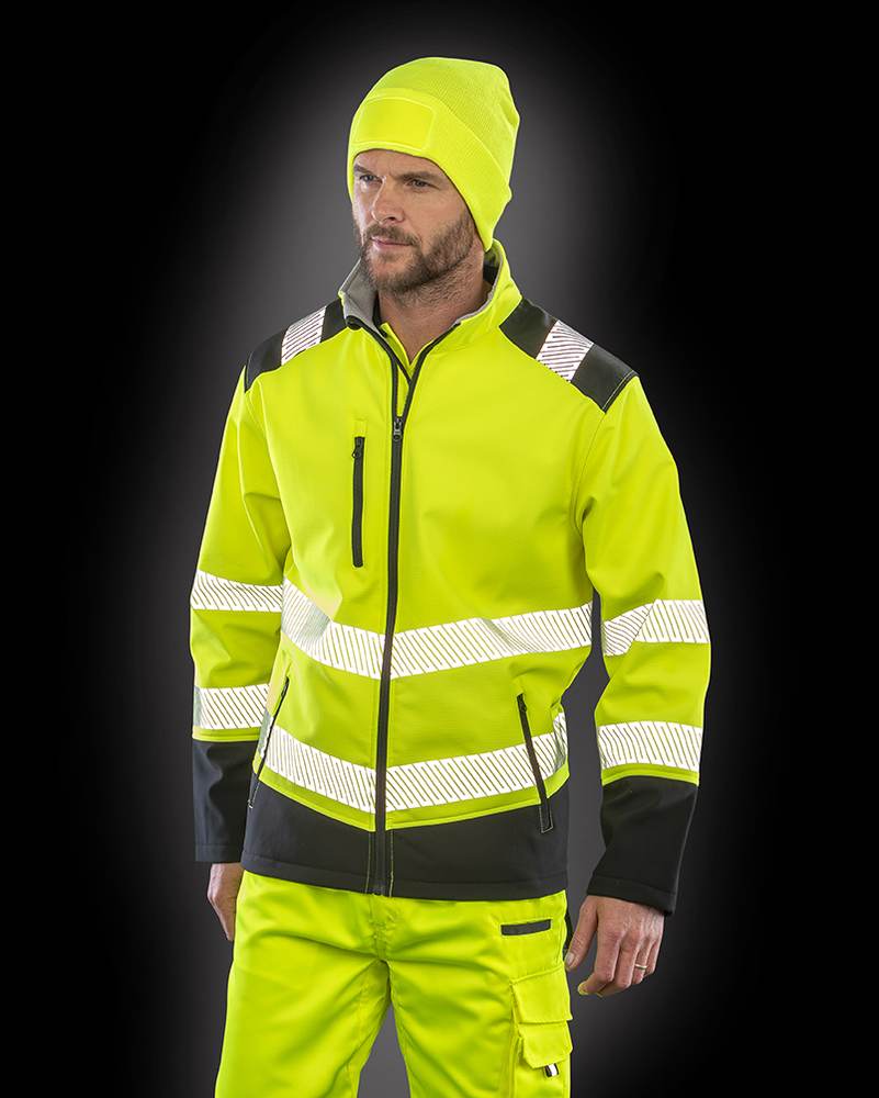 Stark reflektierende RESULT Softshell-Jacke R476X bedruckt