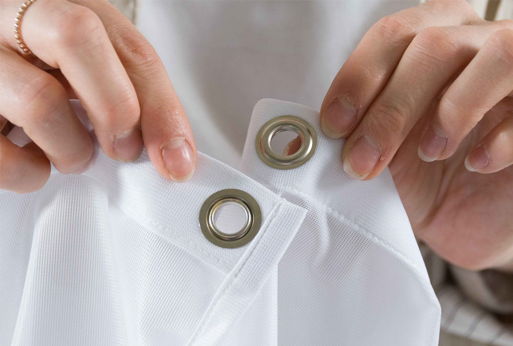 So wirken Werbebänder und Fahnen stark und sympathisch. Das abgebildete Beispiel mit Ösen wird als Werbeband verwendet. Es kann beliebig auch mit Hissband auf der Stangenseite in Wunschgrösse konfektioniert werden, mit oder ohne Karabiner. Das abgebildete Beispiel hat die Grösse von 60×90 cm.